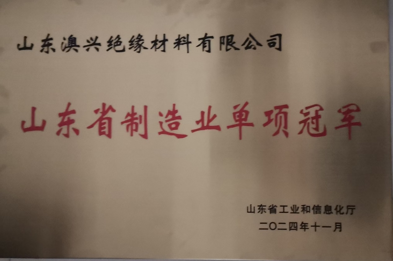 - 山東澳興絕緣材料有限公司榮獲2024年“山東省制造業(yè)單項冠軍” 2024-12-10